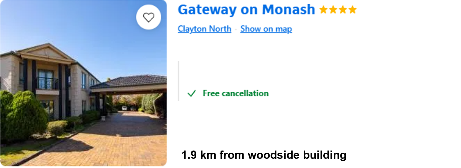 Participants can also find affordable and convenient stays on Airbnb.com.au. We recommend searching for properties using the keywords: “Monash University Clayton”, “Clayton”, or “Notting Hill VIC”.